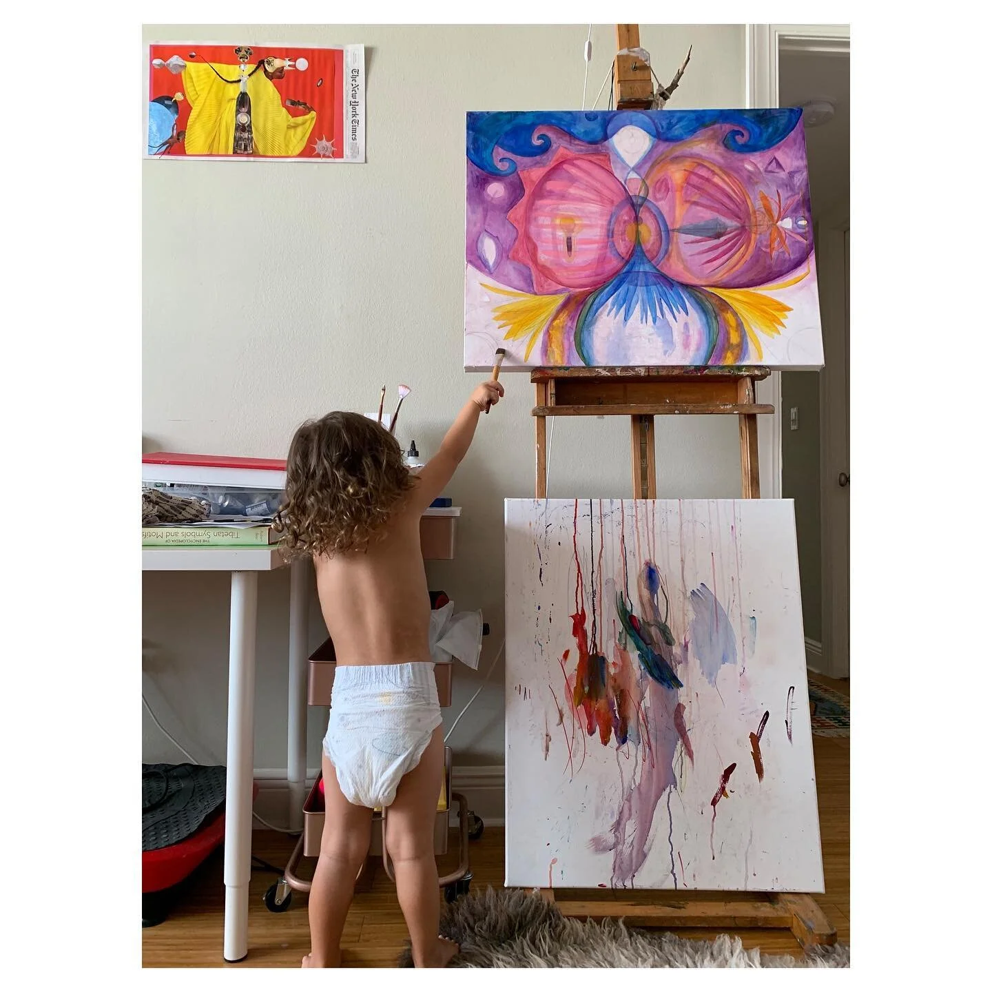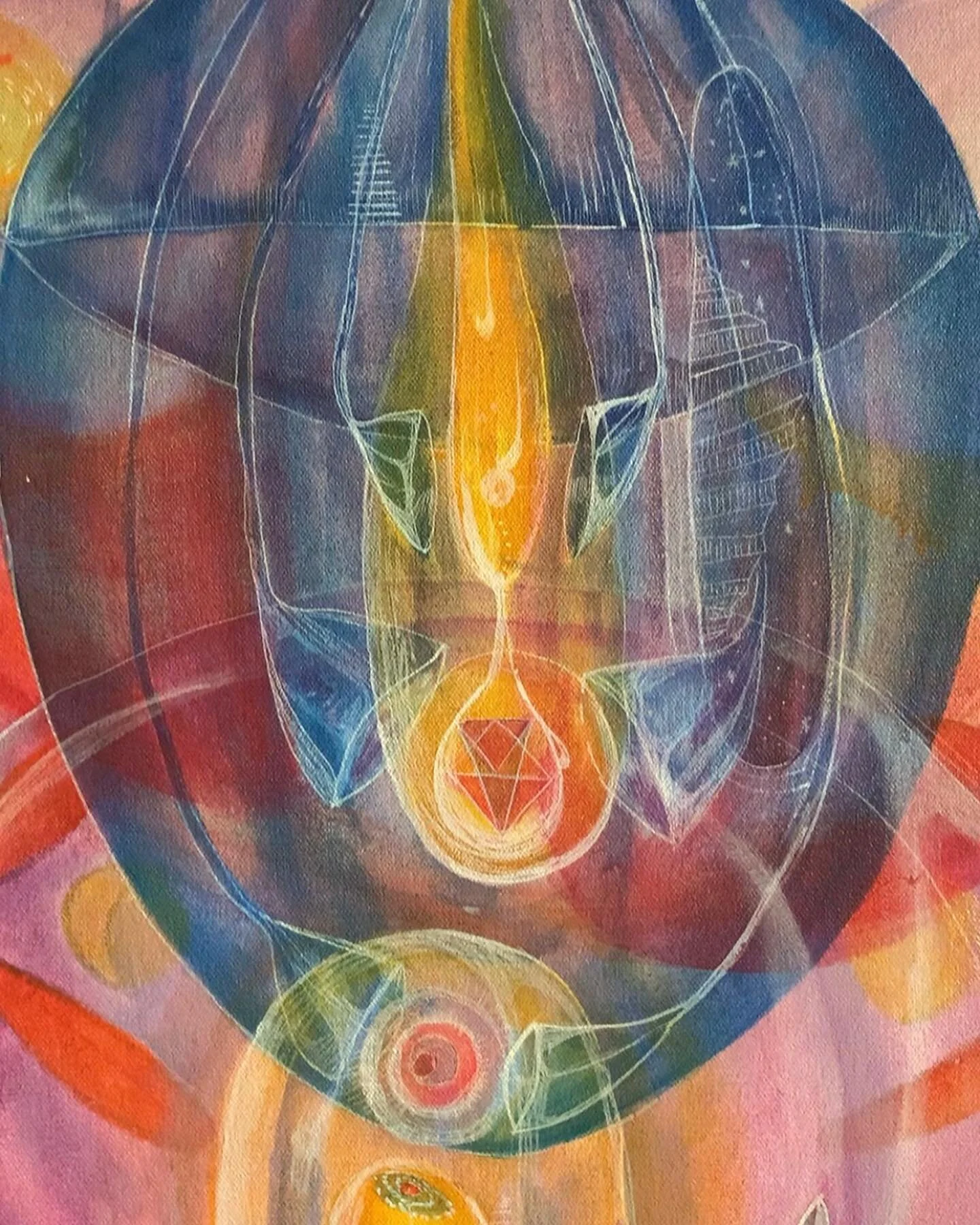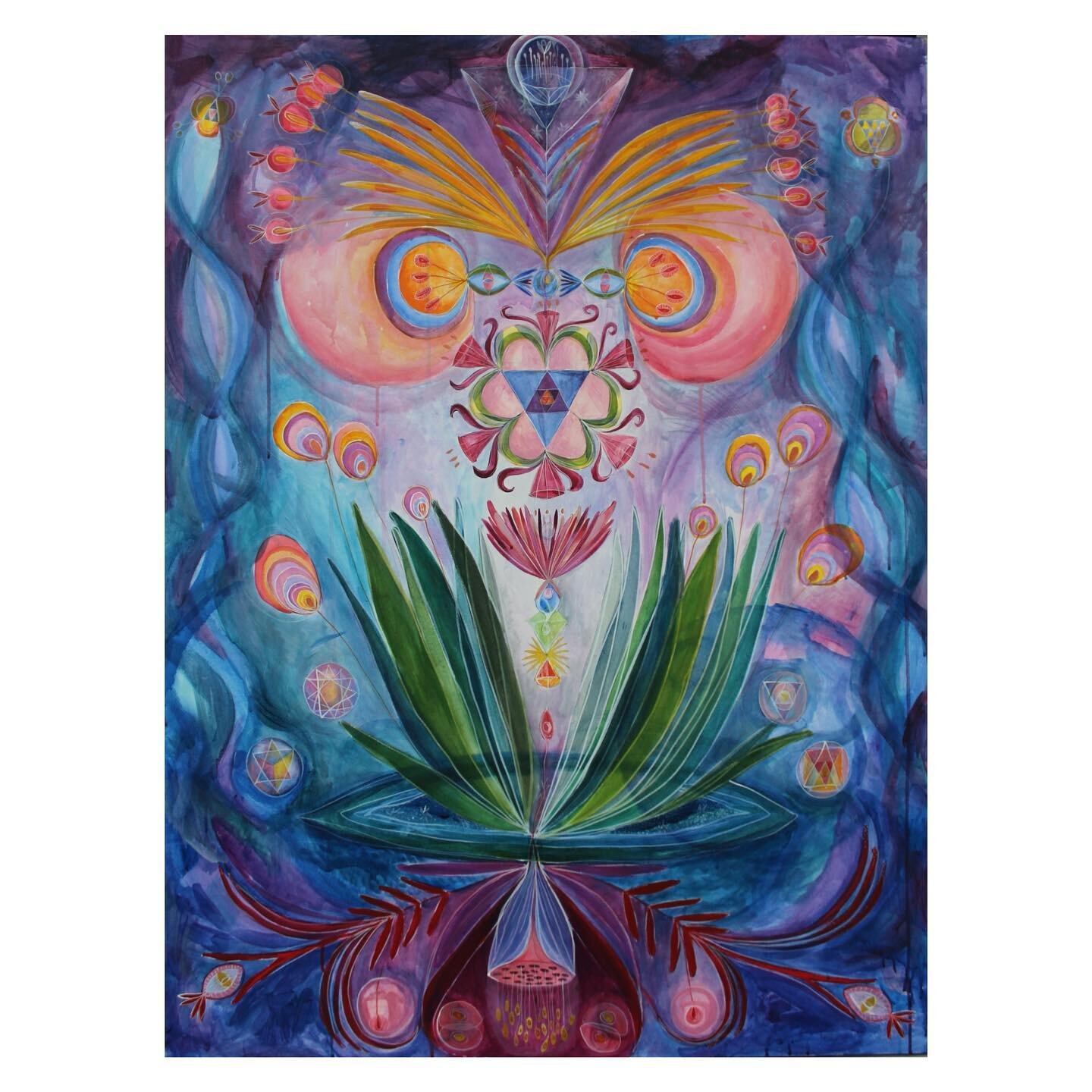 Known for materializing the spiritual, Sharon's paintings bring the viewer into a meditative state of otherworldly realms.
